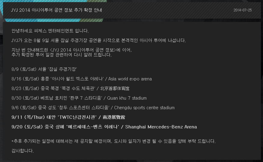 Siguiendo <la información sobre los Conciertos del Asia Tour de JYJ 2014 > en la guía sobre la que informamos la última vez,