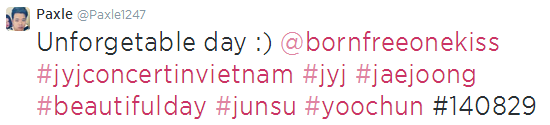 [OTRO TWITTER] 140829 Reportero LE Pax de Kenh14 comparte una foto con JYJ después de la conferencia de prensa