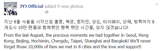 [TRAD] Desde el pasado agosto, los preciosos momentos que tuvimos juntos en Seoul, Hong Kong, Beijing, Hochimin, Chengdu, Taipei, Shanghai y Bangkok! nunca olvidaremos aquellos 10,000 fans que conocimos en las ocho ciudades y el amor y apoyo!
