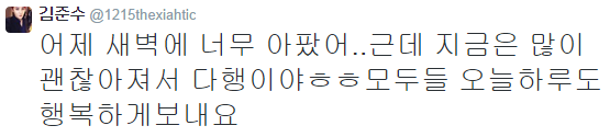 [TRAD] Anoche, estuve con mucho dolor..Pero afortunadamente, estoy sintiéndome mucho mejor ahoraㅎㅎTengan todos hoy un día lleno de felicidad