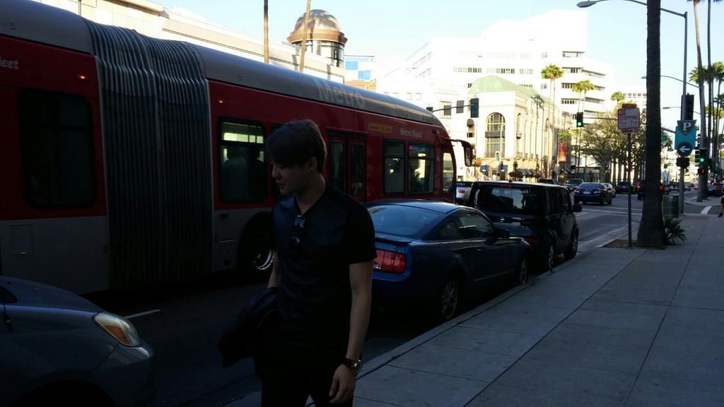 En particular él está capturando la atención de la gente,viéndolo mostrar una moda elegante llevando un reloj y lentes de sol vestido todo de negro.