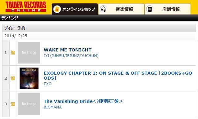 [INFO] 141225~27 “WAKE ME TONIGHT” de JYJ es #1 en pre-orden en Tower Records Japón