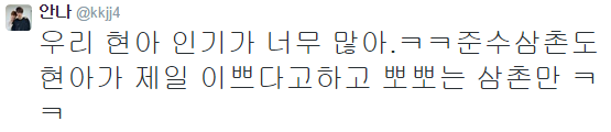 [TRAD] Nuestra Hyuna es tan popular.ㅋㅋ tengo que decir que Hyuna es la mas bonita para el tio Junsu también,al igual que el tío está siendo besado por ella ㅋㅋ