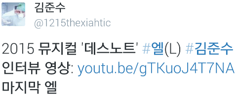 [TWITTER] 150411 Kim Junsu Twitter actualización : entrevista de L (kin junsu) de ‘Death Note’