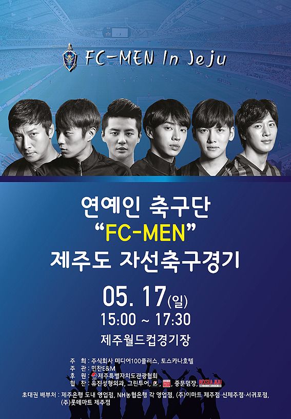 El 17 de mayo ,el equipo de alianza de Jeju acompañará al equipo de Junsu, FC-MEN, al gimnasio de la copa mundial de Seogwipo para un evento de caridad. incluyendas en el equipo se encuentran celebridades como Ji Chang Wook, Park Gun Hyung, Lee Wan, Kikwang & Doojoon de B2ST, Baro de B1A4, Woohyun de INFINITE, y Seulong y Jinwoon de 2AM.