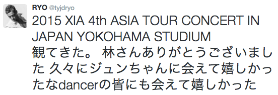 fui y vi 2015 XIA 4th ASIA TOUR CONCERT IN JAPAN YOKOHAMA STADIUM. Muchas gracias Mori san..Estaba muy feliz después de reunirme con jun chan después de tanto tiempo. También estaba muy feliz de encontrarme con todos los bailarines