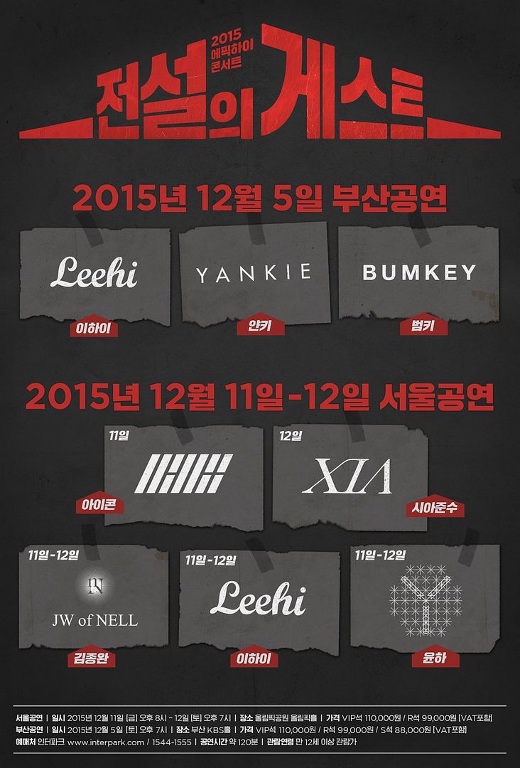 Mientras tanto, el concierto de Epik High se realizará el 5 de diciembre y el 11-12 de Diciembre en Busan & Seoul, respectivamente (foto por YG Entertainment)