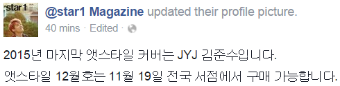 última portada de @star1 2015 es Kim Junsu de JYJ