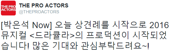 [Park Eun-seok Now] Producción del musical de <Dracula> 2016 ha empezado con el inicio de la reunión de hoy! Por favor esperen con ansias y brinden su atención, ~!