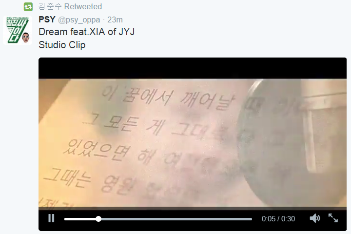 [OTRO TWITTER + TWITTER] 151202 Kim Junsu retweeteo el tweet de PSY de la grabación de ‘Dream’