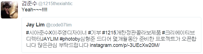 [PHOTO] #시아준수X이주영디자이너 #기부 #1215개한정판콜라보제품 #크리에이티브디렉터JAYLIM #photoby심형준 드디어 몇개월동안 준비한 프로젝트가 오픈합니다 많은관심 부탁드립니다